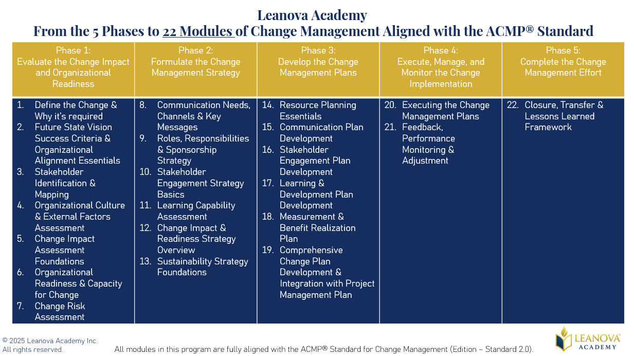 Discover our ACMP® QEP™-accredited programs and see exactly how our certifications prepare professionals for real-world change leadership.