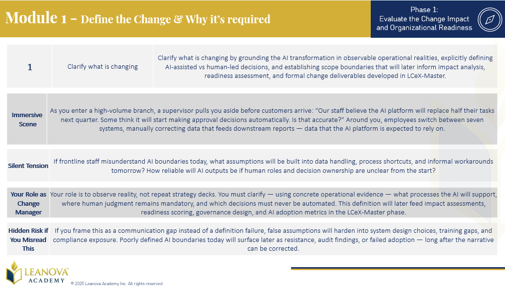 Achieve mastery in AI-driven change management with LCeX-Master™ — a 10-hour, self-paced advanced certification designed for practitioners leading organizational transformation in the age of artificial intelligence. This affordable program builds deep, real-world expertise through simulation-based deliverables, AI-governance practices, risk and oversight techniques, and ACMP®-aligned competencies. Become one of the few professionals fully equipped to guide human–AI collaboration, monitor AI-enabled workflows, and lead complex enterprise-level change with confidence.